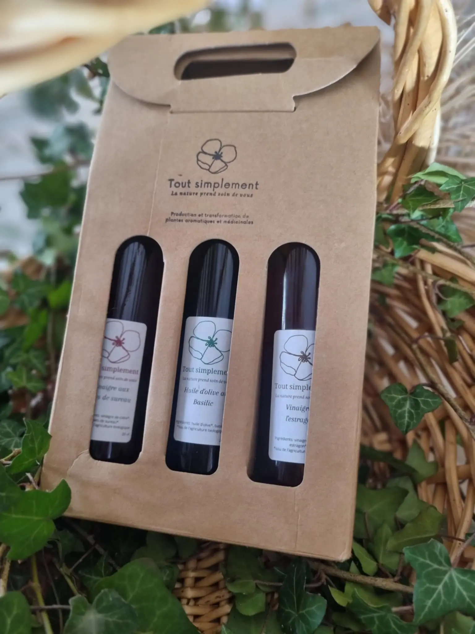 Coffret contenant une huile et 2 vinaigres aromatisés