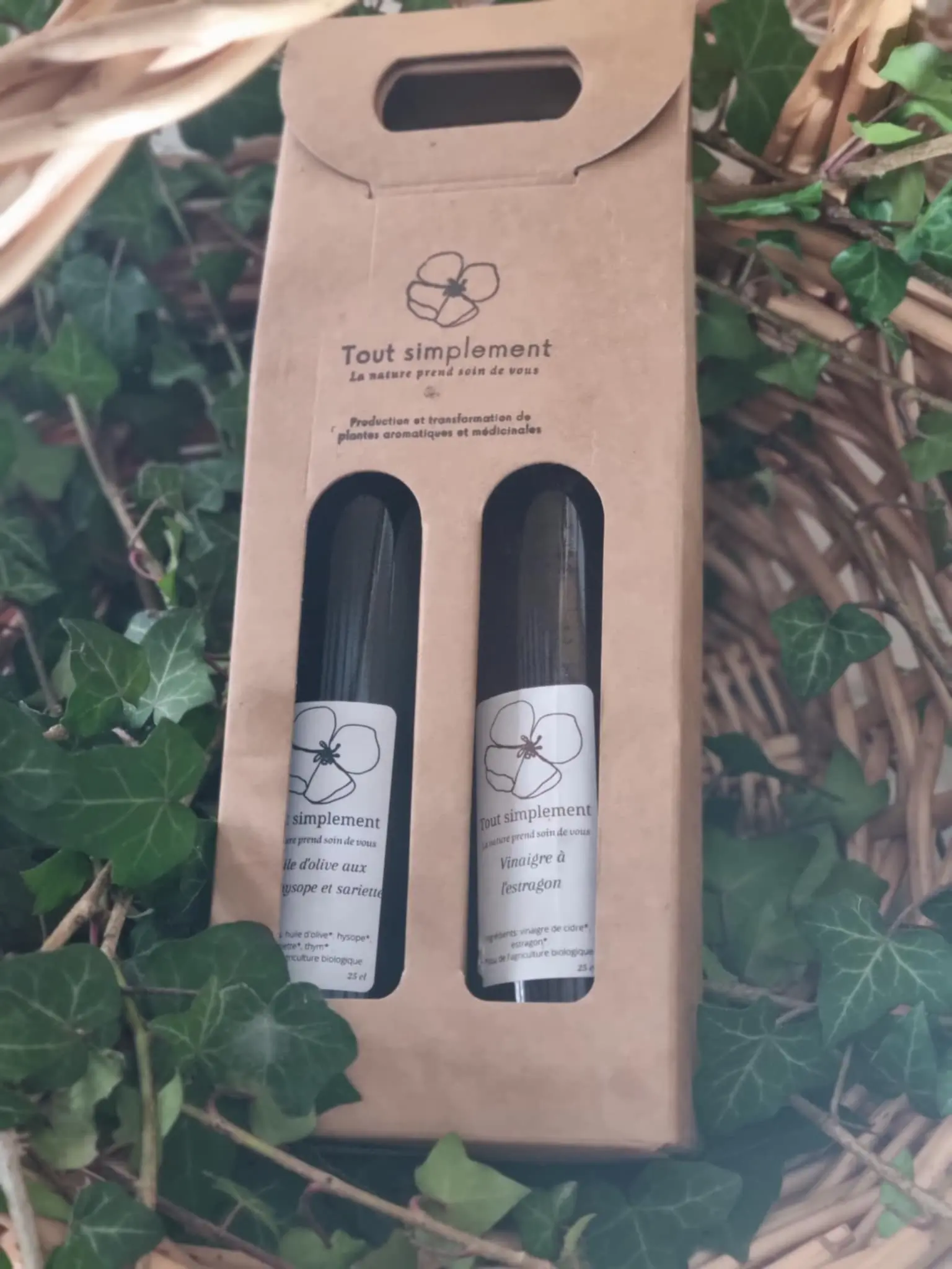 Ce coffret comprend 1 huile et 1 vinaigre aromatisés de votre choix selon les huiles et vinaigres proposés et disponibles sur le site.
